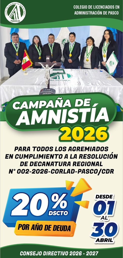 En el Colegio de Licenciados en Administración de Pasco hemos lanzado nuestra Campaña de Amnistía 2026.